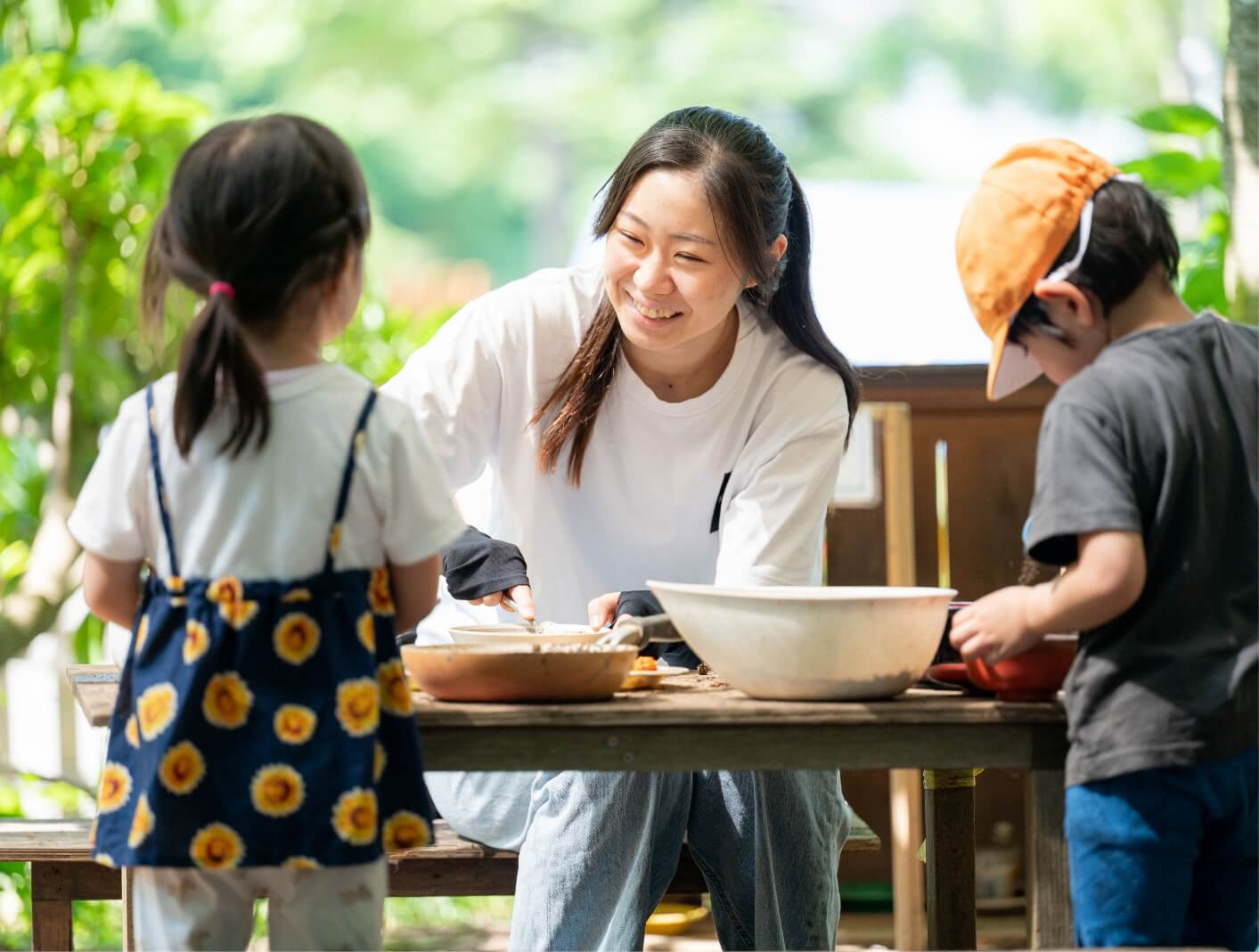 入る前も森に魅力は感じていましたが、入ってさらに良さを感じています。虫などが自然のまま過ごしているのを見て、子どもが「なんだろう」と不思議に思ったり、発見があったりで子どもの学びにつながるのが実感でき、よりこの環境に魅力を感じますね。あとは入ってからじゃないとわからないのですが、先生たちが本当にあったかくて働きやすい職場です。